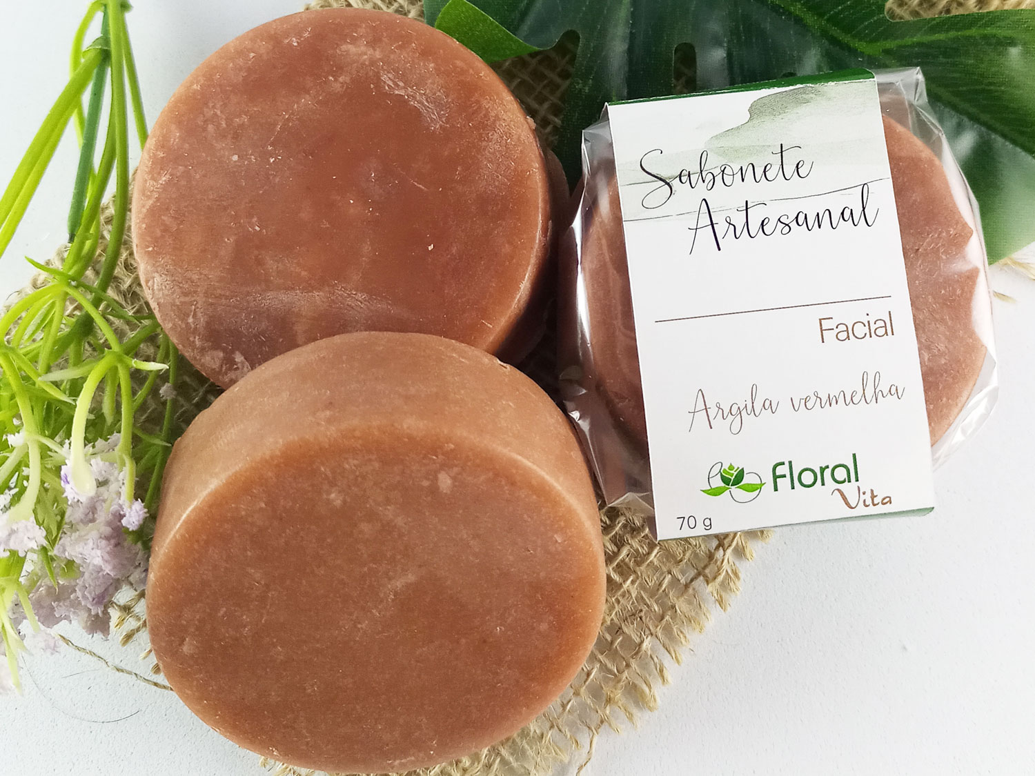 Ingredientes: A argila vermelha absorve a oleosidade, hidrata, previne linhas de expressão, tem efeito cicatrizante. Extrato glicerinado. Óleo de coco.